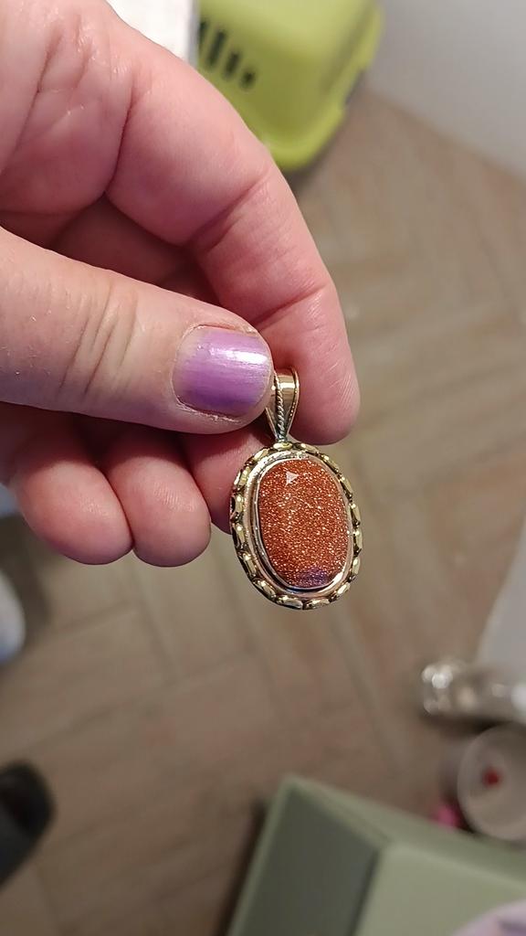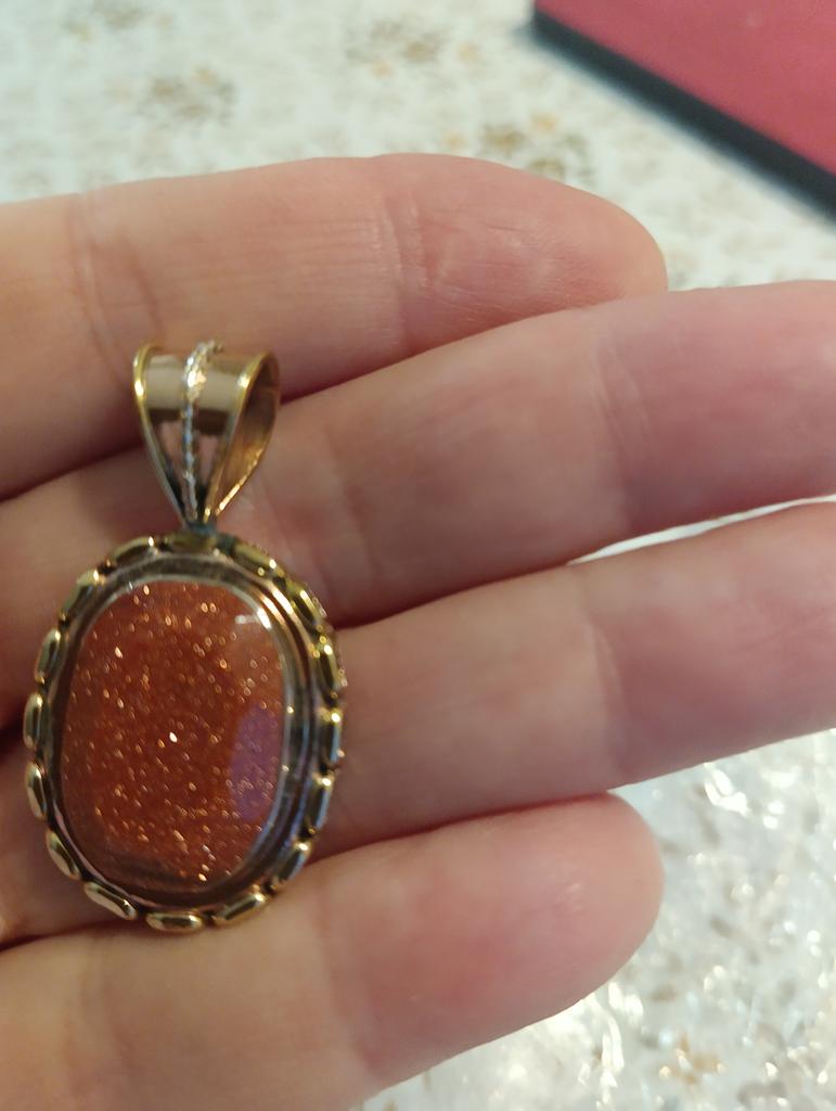 Natural Sunstone Gemstone 925 Solid Sterling Silver Two Tone Pendant 1.25'' U7B97