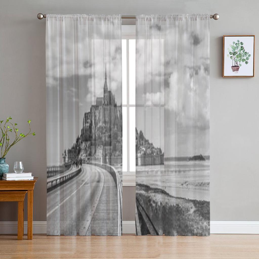 Mont Saint Michel Cathedral On The Island Normandy Northern France Europe Tulle Sheer Curtains Living Room Voile Organza Curtain