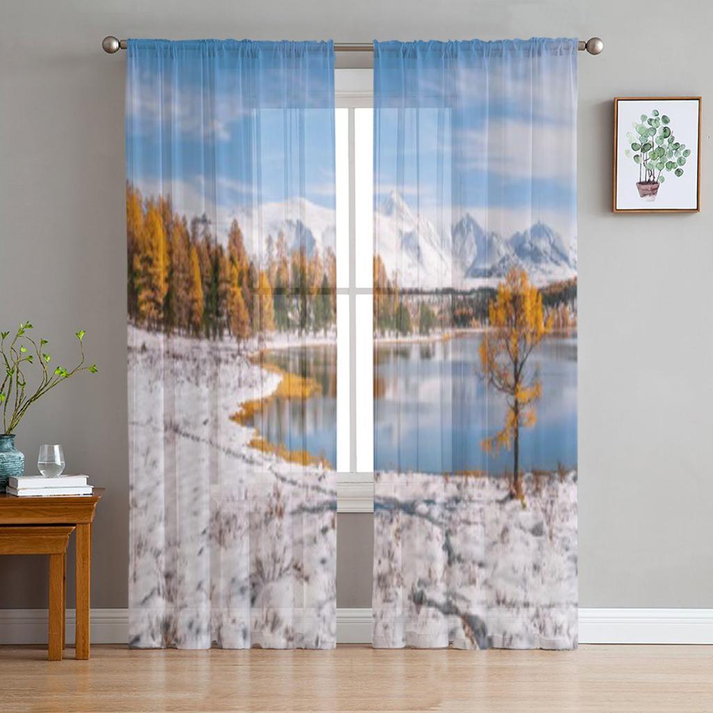 Mix Of Autumn And Winter In The Mountains Chiffon Sheer Curtains for Living Room Bedroom Window Curtain Voiles Tulle Cortinas