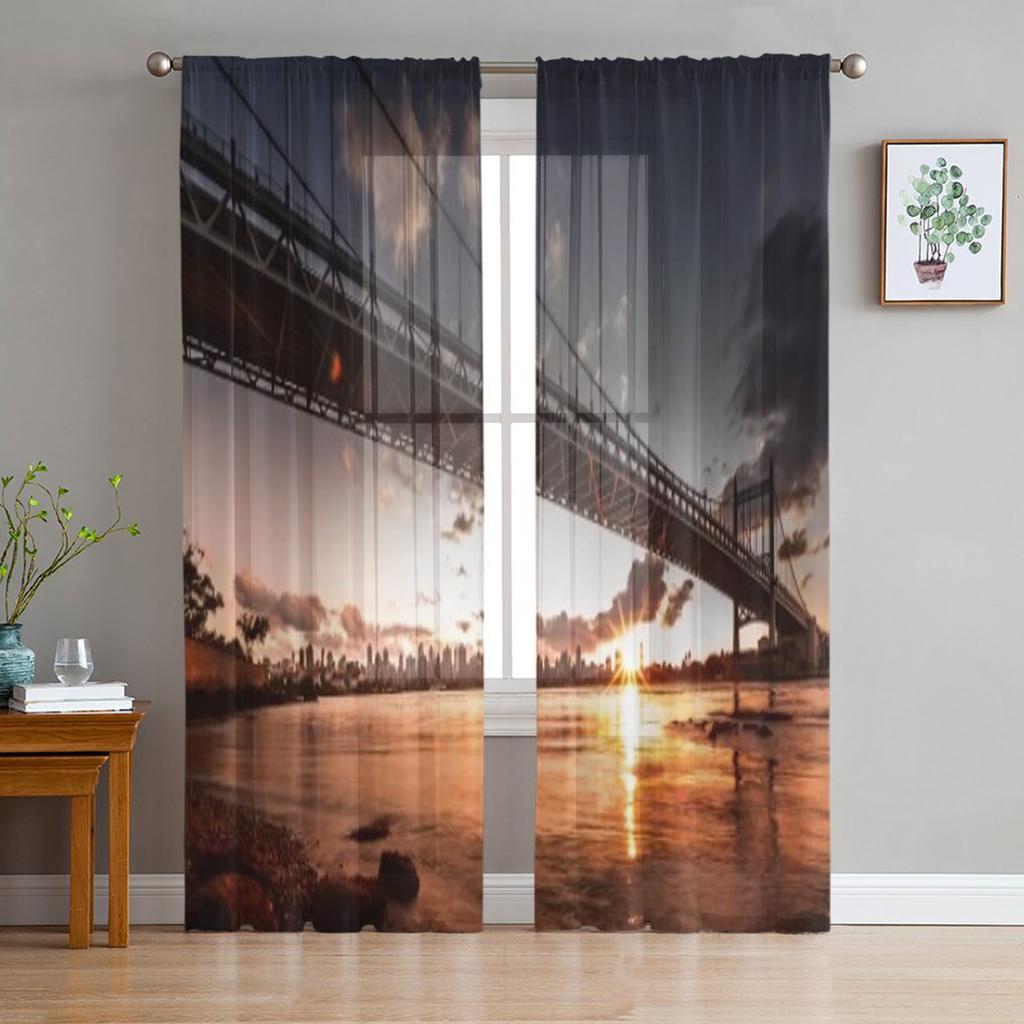 Queensboro Bridge East River At Sunset Chiffon Sheer Curtains for Living Room Bedroom Window Curtain Voiles Tulle Cortinas