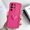 Solid Color Soft Silicone Cover For Samsung Galaxy S24 S23 Ultra S22 S23 S21FE A53 A55 A35 A32 A05 A52 A34 3D Love Heart Curly Wave Frame Case
