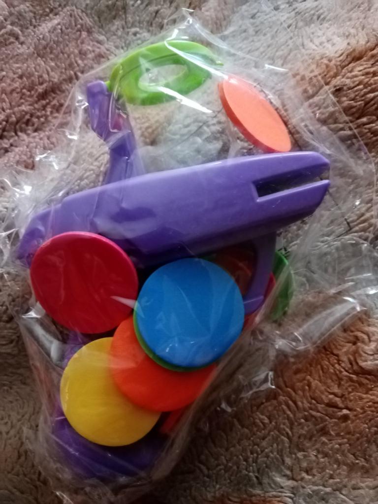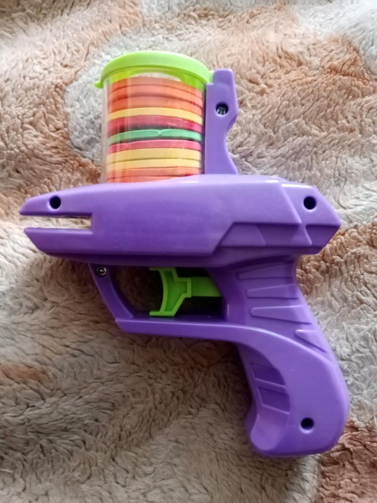 The little gun is wonderful, the adults played with it for now, the children will definitely like it. Soft circles. Thank you.
