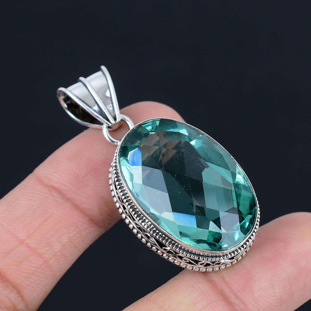 Aqua Narine Gemstone Pendant Solid 925 Sterling Silver Pendant Jewelry Gift For Unisex