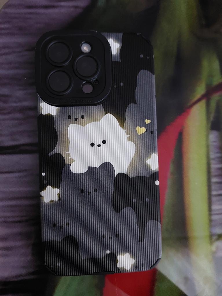 Vertical Grain Leather Cartton Shiny Cat Shell Soft Silicone Phone Case Back Cover with Camera Lens Full Protection for iPhone