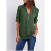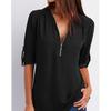 Women's Fashion Pullover V-neck Solid Color Zipper Temperament Sateen Long Sleeve Casual Shirt