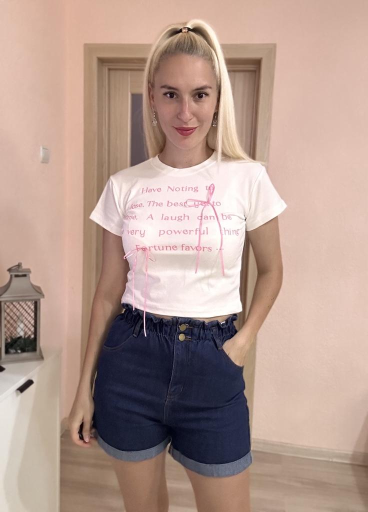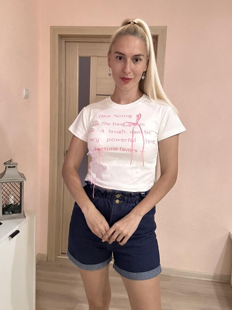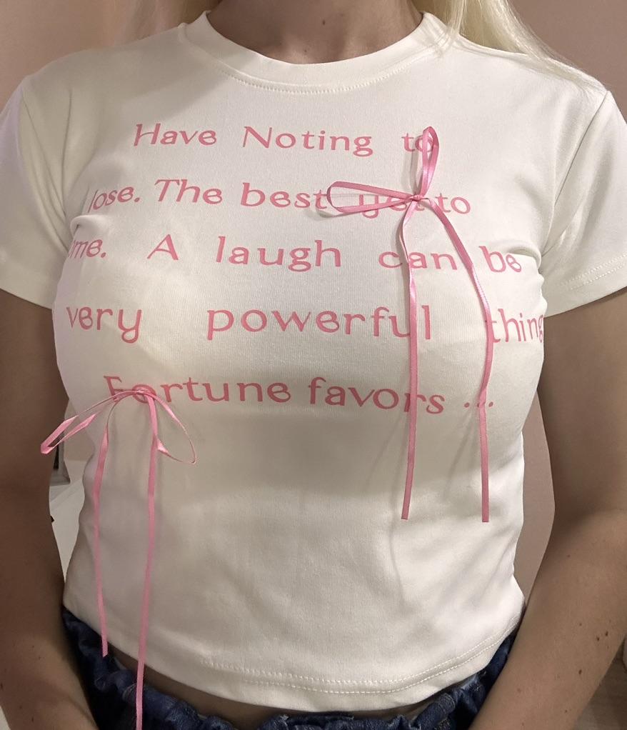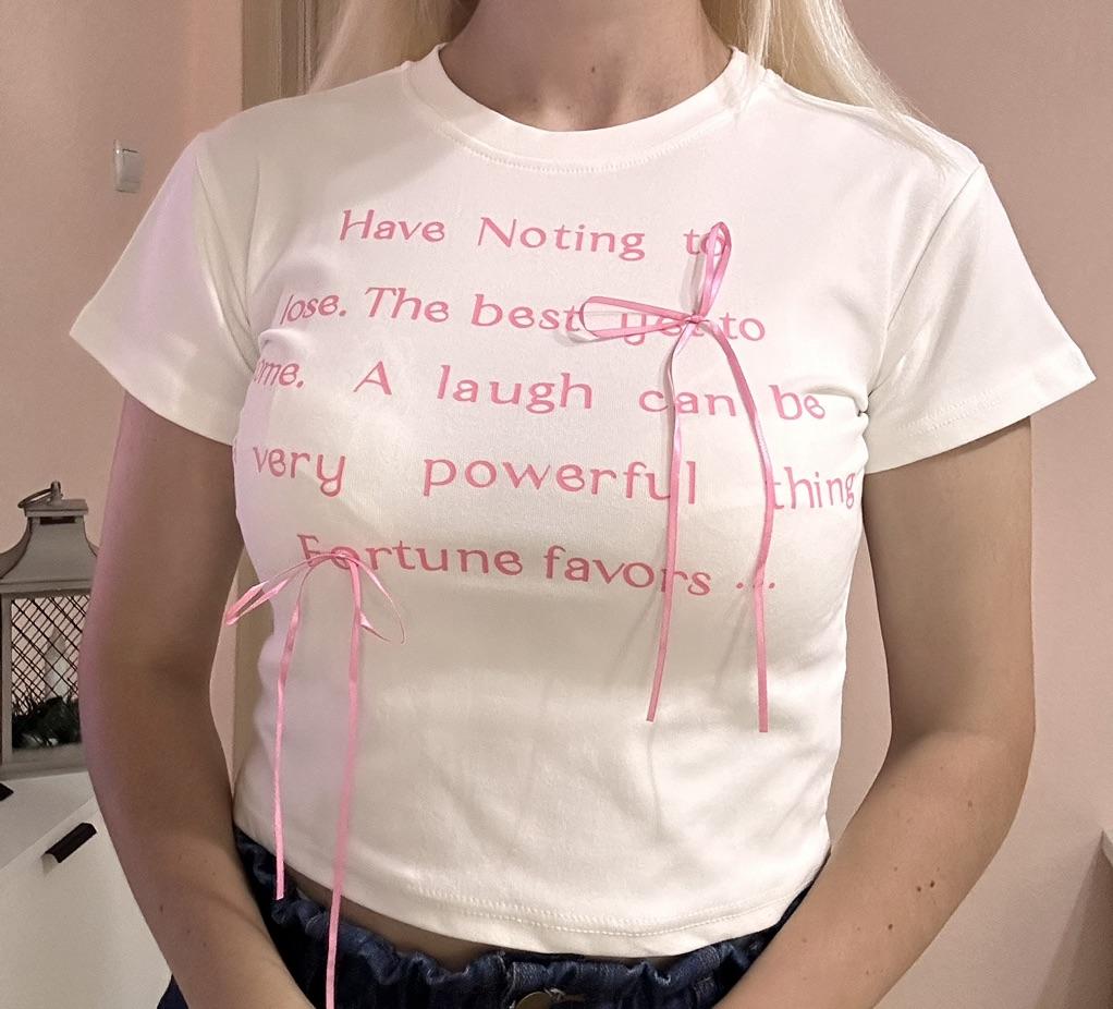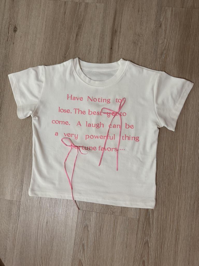 Aesthetic Sweet Letters Print Crop T-shirt Women Bow Summer Elegant Cute Slim Fit Clothes Korean Fashion O-Neck Tops Streetwear