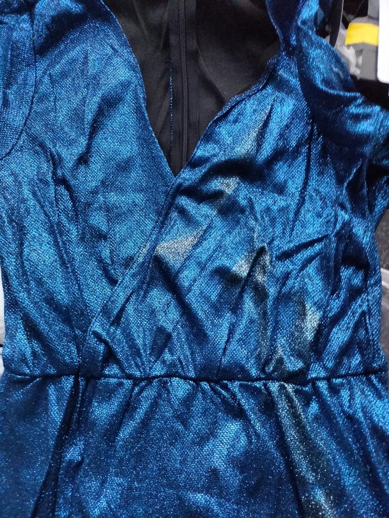 Women's New Solid Color V-Neck Sexy Sequined Lace Mesh Stitching Hem Slit Dress