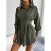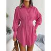 Women's Dresses Summer Solid Colour High Waist Wrap Short Sleeve Shirt Single Breasted A-Line Skirt