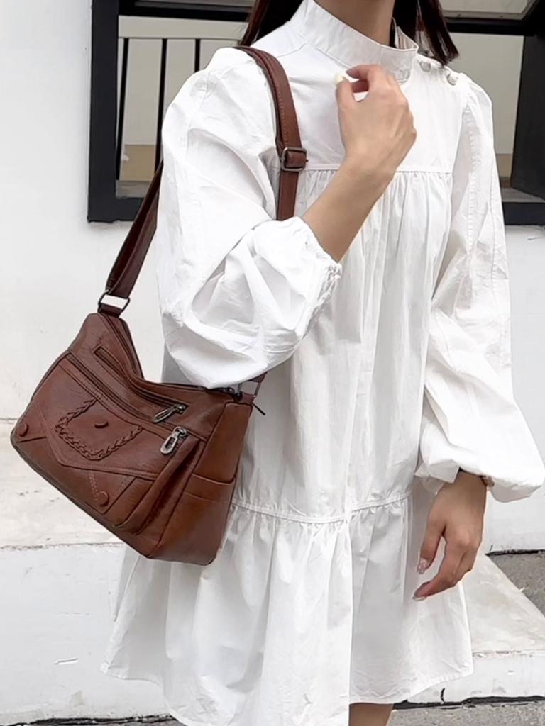 Crossbody Bag Middle-aged Women's Bag Soft Leather Large Capacity Multi-layer Shoulder Bag