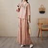 Retro Embroidery Suit, Summer Fashion Shirt, Lightweight Wide-leg Pants, Slimming Mom's Two-piece Set