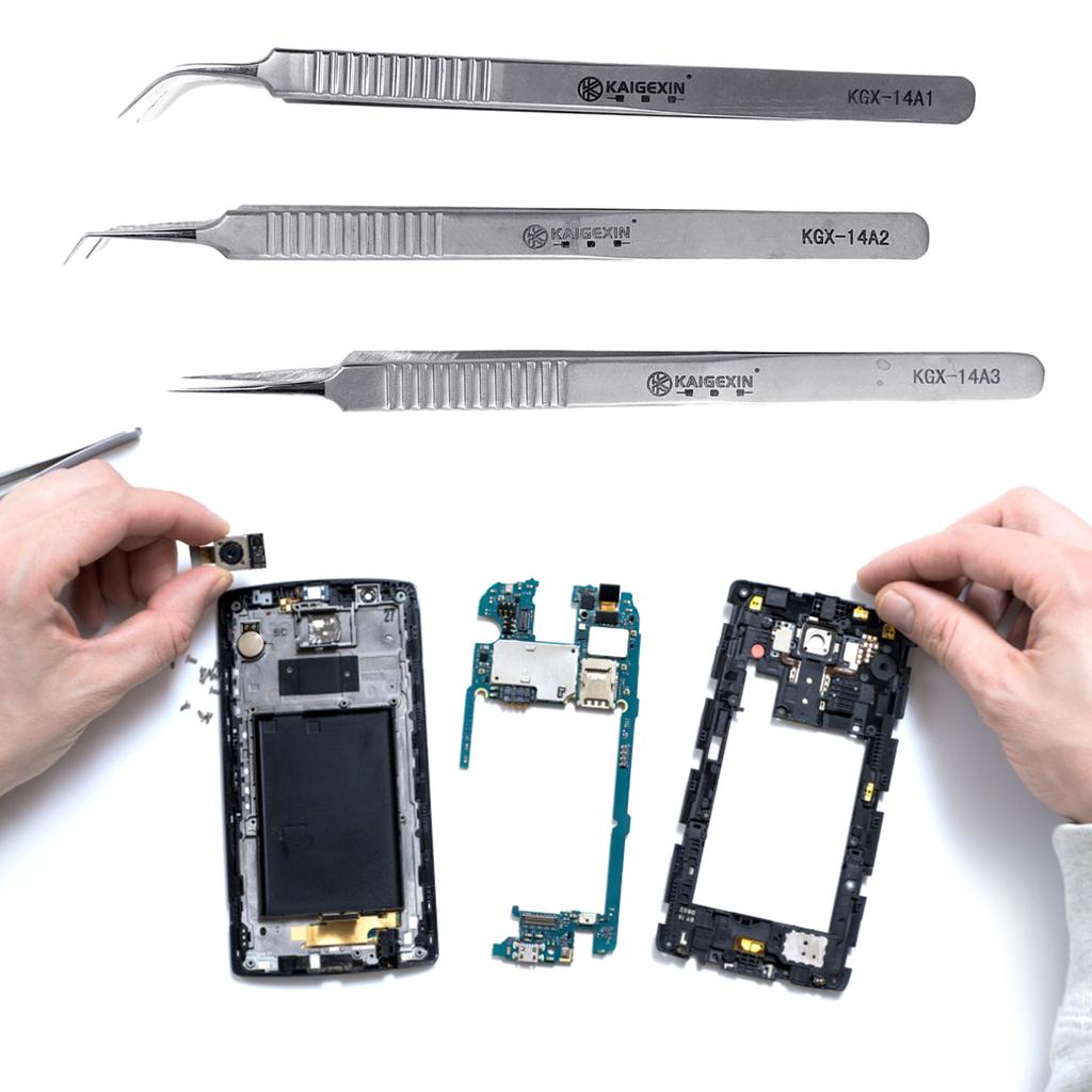 Perfect for mobile phone repair:Our fine thin tip tweezers are designed to handle delicate repairs with ease. The long and sturdy handle ensures accurate handling in tight spots , making them an essential tool for any mobile phone repair job.