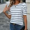 Summer Women's Fashionable Puff Sleeve Striped T-shirt for Women