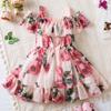 Girls Fashion Suspender Chiffon Dress Princess Flower Print Children Sling Dress for Baby Kids Clothes