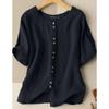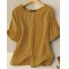 Summer Casual Loose Tunic Tops Women Vintage OL Shirt O Neck Short Sleeve Blouse Solid Cotton Blusas Buttons Down Chemise