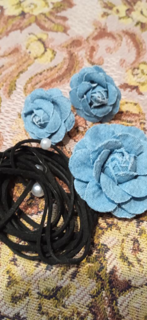 Blue Camellia Flower Stud Ear Necklace Bridal Jewelry Sets Wedding France Lace Up Clavicle Necklaces Earring Pearl Jewelry Women