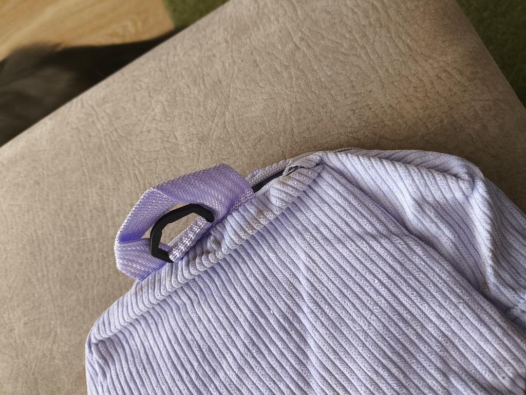 It arrived all covered in some kind of debris, needs cleaning. There are crooked seams and unevenness inside the product. Not very neat. The zipper is good, the color matches the description. The straps have plastic carabiners, so it's better not to carry anything heavy in it. -1 star for quality