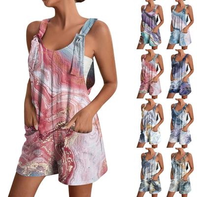 Women's Summer Jumpsuit Shorts,Printed Fashionable Casual Sleeveless Jumpsuit Shorts Rompers With Pockets
