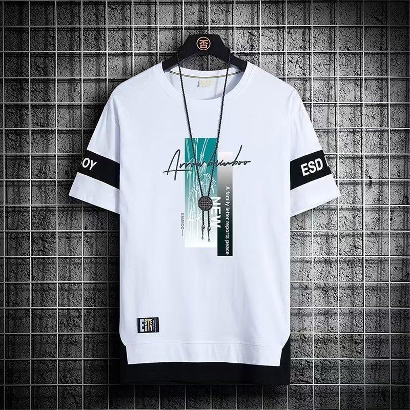 Summer Men's Short Sleeved T Shirt Men's Casual Versatile Half Sleeved T Shirt Trend Color Blocking