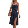 Summer Dresses for Women 2024 Casual Spaghetti Strap Sundresses Polka Dot Slim Fit Split Knee Length Boho Dress