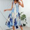Women's Casual Fashion Round Neck Sleeveless Print Irregular Hem Midi Dress