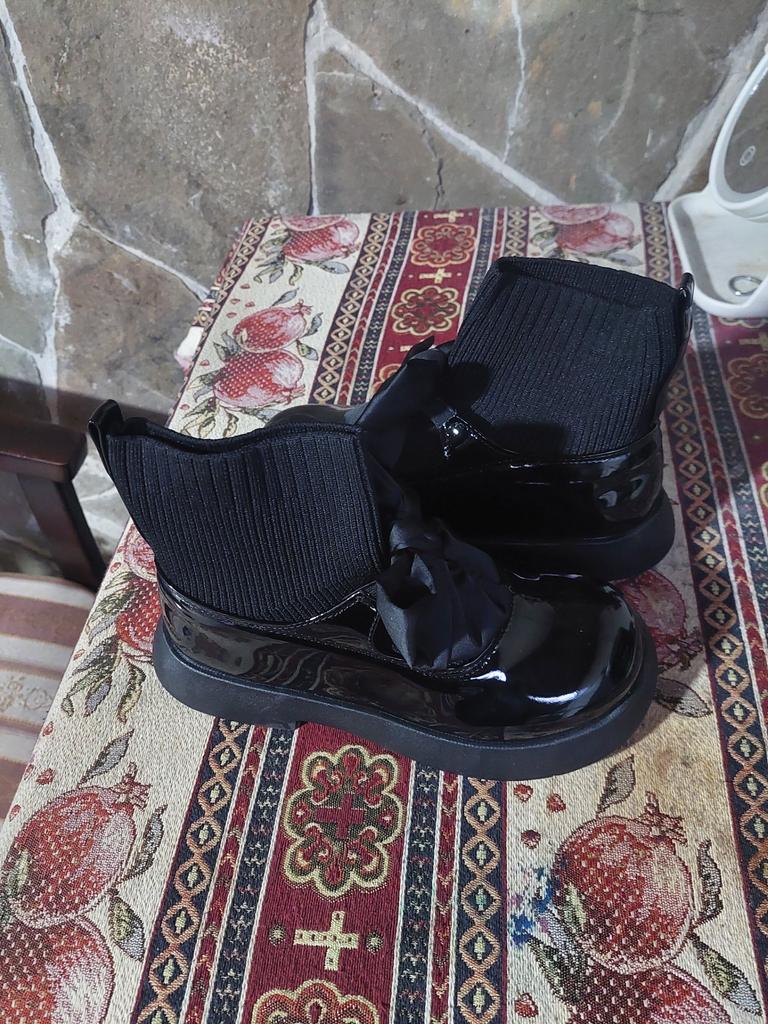New Girl's Sock Boots Chunky Big Bowtie Elegant Cute Children Short Boot Patent Leather Winter 26-36 Fashion Ship-on Kids Shoes