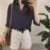 Summer Korean Version Loose and Slimming Striped Shirt Women's 3/4 Sleeved Versatile Casual Shirt