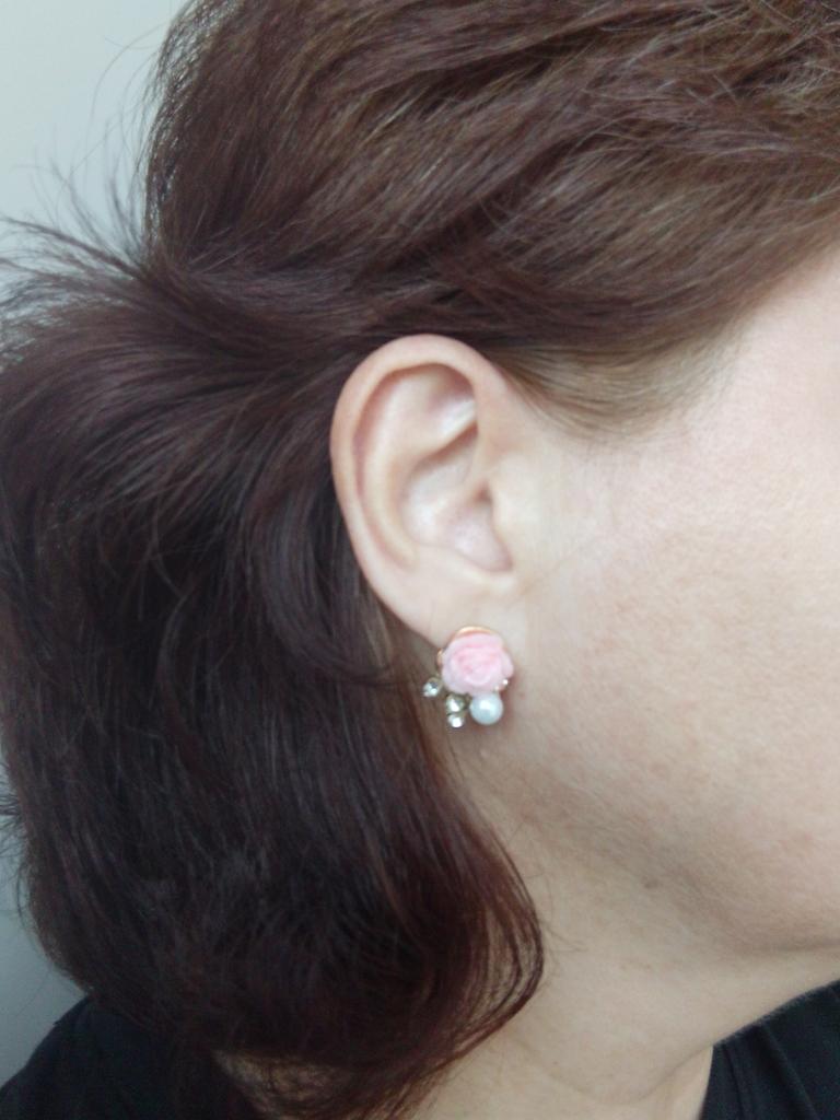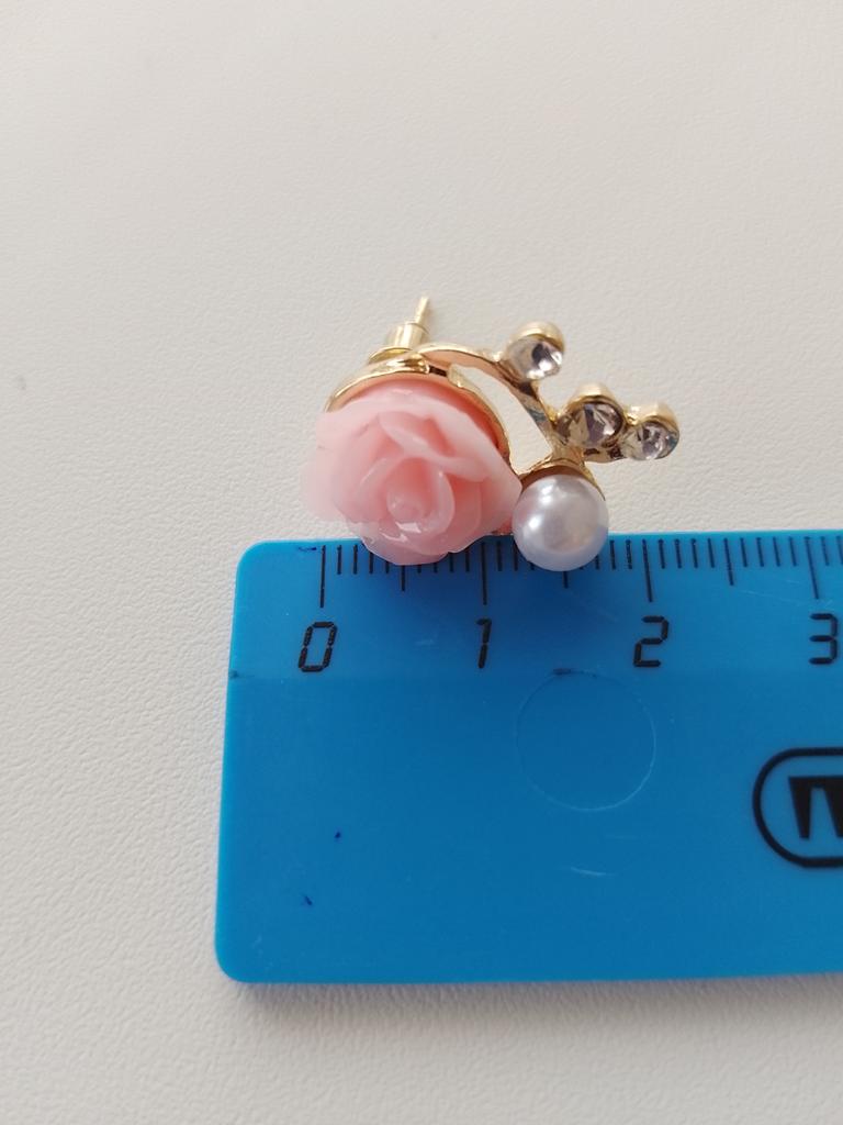 1Pair Women's Korean Style Rose Shiny Rhinestone Faux Pearl Ear Studs Earrings
