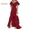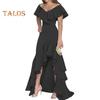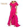 Elevate your style with this stunning Women's V-neck Ruffled Maxi Dress. The unique splicing design accentuates your figure, creating a slimming effect. Featuring a high-low hemline, this dress exudes elegance and charm.