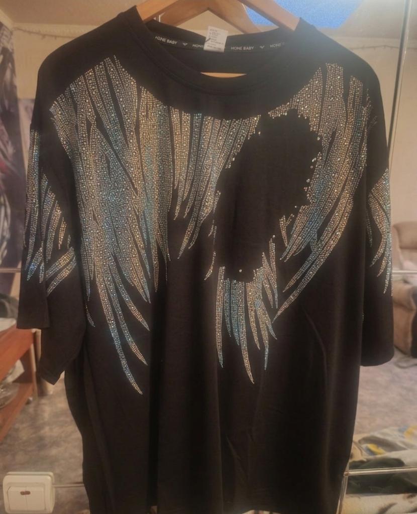 Beautiful T-shirt Lots of rhinestones, I hope they don't fall off during washing The fabric is soft, pleasant