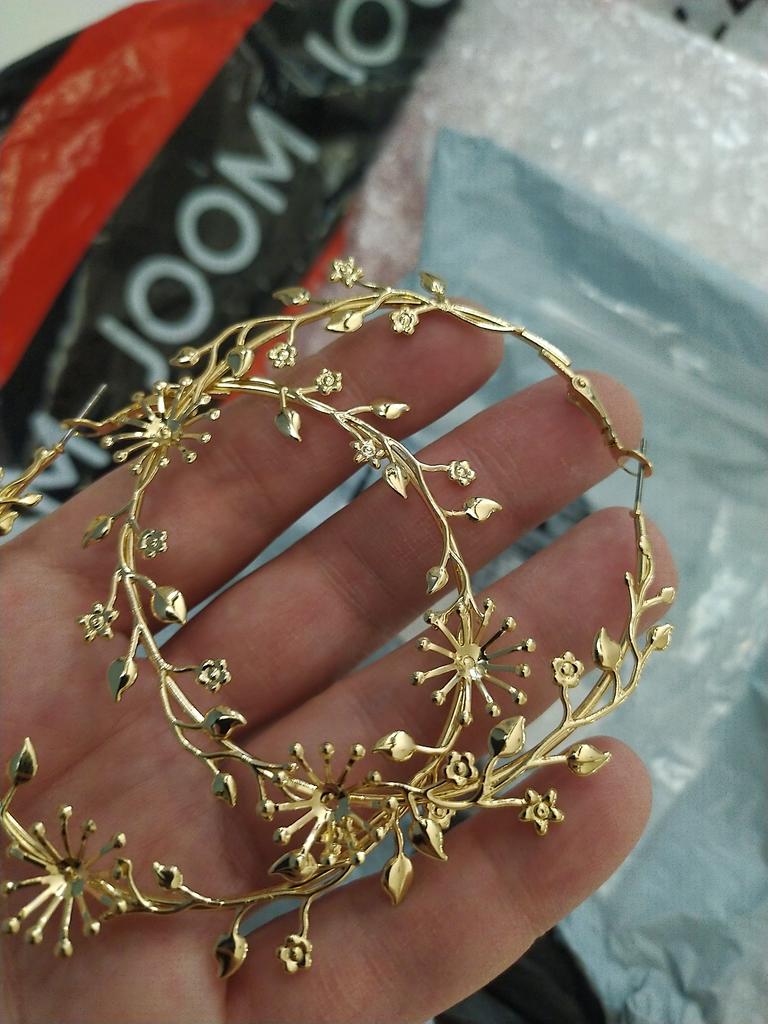 Oversized Earrings Flowers Branches and Leaves Exaggerated Gold Large Circle Sweet Cool Fashion Atmosphere Earrings Earrings Earrings Earrings