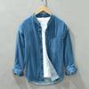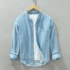 Korean Simple Style Light Blue Denim Shirt Men Spring/Autumn Daily Casual Shirts Stand Collar Pure Cotton Long Sleeve Shirt with Pocket
