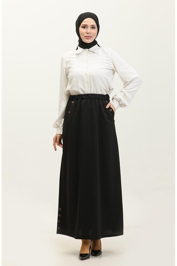 Women's Style Big Size Skirt Feride Buttoned Skirt|Fabric: Knitted Pattern: Plain Accessory: Pocket Button Detail Elastic Unlined Season: Seasonal Pattern: Model Worn Size: 44 Length: 108 Plus Size Option Knitted Fabric. simple. Unlined. Seasonal. Large Size Option Available. 100% Poly Elastic Waist Comfortable Use Made in Turkey Our Model's Measurements: hips: 98, Waist: 66, Chest: 90, Height: 175, Weight: 59. | | pattern:Regular | Material:Knitted | Fabric Type:Knitted | color:Black | style:Casual | pattern:Plain | height: 175 | Environment:Casual | Additional Feature: Washable | Lining Condition:Unlined | Waist:66 | Pocket:No pocket | Weaving Type:Polyester | Closing Type: Without Closing | Belt/Sash|Size: S, Chest: 84-88cm, Waist: 66-70cm, Hips: 92-96cm | To you: M, Chest: 90-94cm, Waist: 72-76cm, Hips: 98-102cm | To you: L, Chest: 96-100cm, Waist: 78-82cm, Hips: 104-108cm | To you: XL, Chest: 102-106cm, Waist: 84-88cm, Hips: 110-114cm | To you: 2XL, Chest: 108-112cm, Waist: 90-94cm, Hips: 116-120cm | To you: 3XL, Chest: 112-116cm, Waist: 94-98cm, Hips: 122-126cm | To you: 4XL, Chest: 118-122cm, Waist: 100-104cm, Hips: 128-132cm | To you: 5XL, Chest: 124-128cm, Waist: 106-110cm, Hips: 134-138cm | To you: 6XL, Chest: 130-134cm, Waist: 112-116cm, Hips: 140-144cm | To you: 7XL, Chest: 136-140cm, Waist: 118-122cm, Hips: 146-150cm | To you: 8XL, Chest: 142-146cm, Waist: 124-128cm, Hips: 152-156cm | To you: 9XL, Chest: 148-152cm, Waist: 130-134cm, Hips: 158-162cm | To you: 10XL, Chest: 154-158cm, Waist: 136-140cm, Hips: 164-168cm | To you: 11XL, Chest: 160-164cm, Waist: 142-146cm,Hips: 170-174cm | To you: 12XL, Chest: 166-170cm, waist: 148-152cm, Hips: 176-180cm | To you: 13XL, Chest: 172-176cm, waist: 154-158cm, Hips: 182-186cm | To you: 14XL, Chest: 178-182cm, waist: 160-164cm, Hips: 188-192cm | To you: 15XL, Chest: 184-188cm, waist: 166-170cm, Hips: 194-198cm