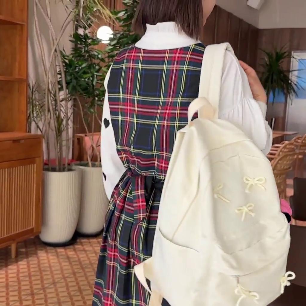 Large Capacity Student Bag Solid Color Women's Bow Backpack for Girls Computer Bag