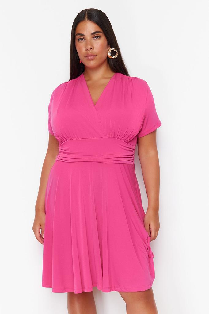 Women's Style Plus Size Fuchsia Double Breasted Mini Knitted Dress