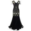 Women's Fashion V-neck Vintage Sequins Dress Banquet Party Evening Gown Fishtail Dress Long Dresses