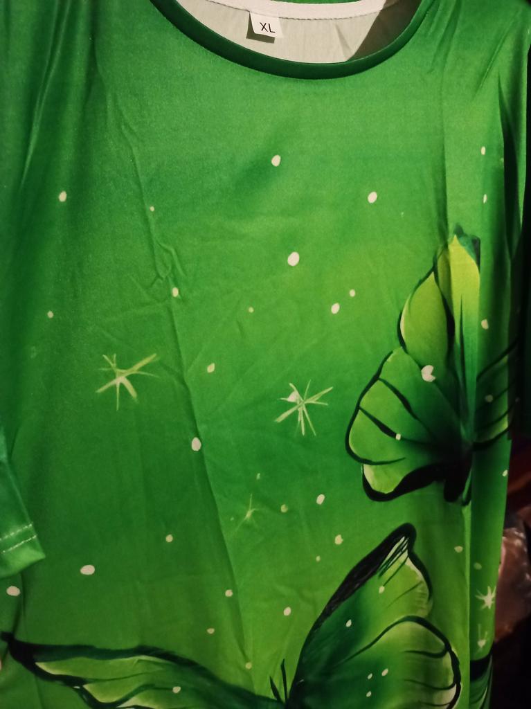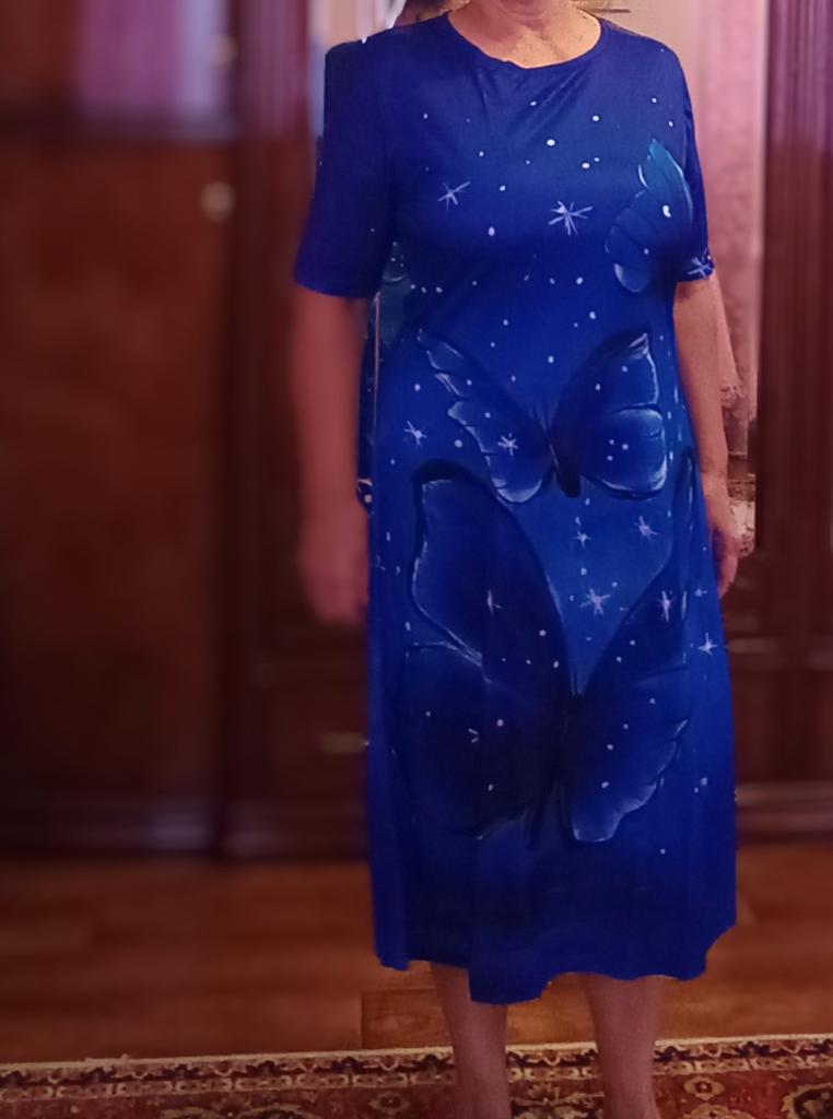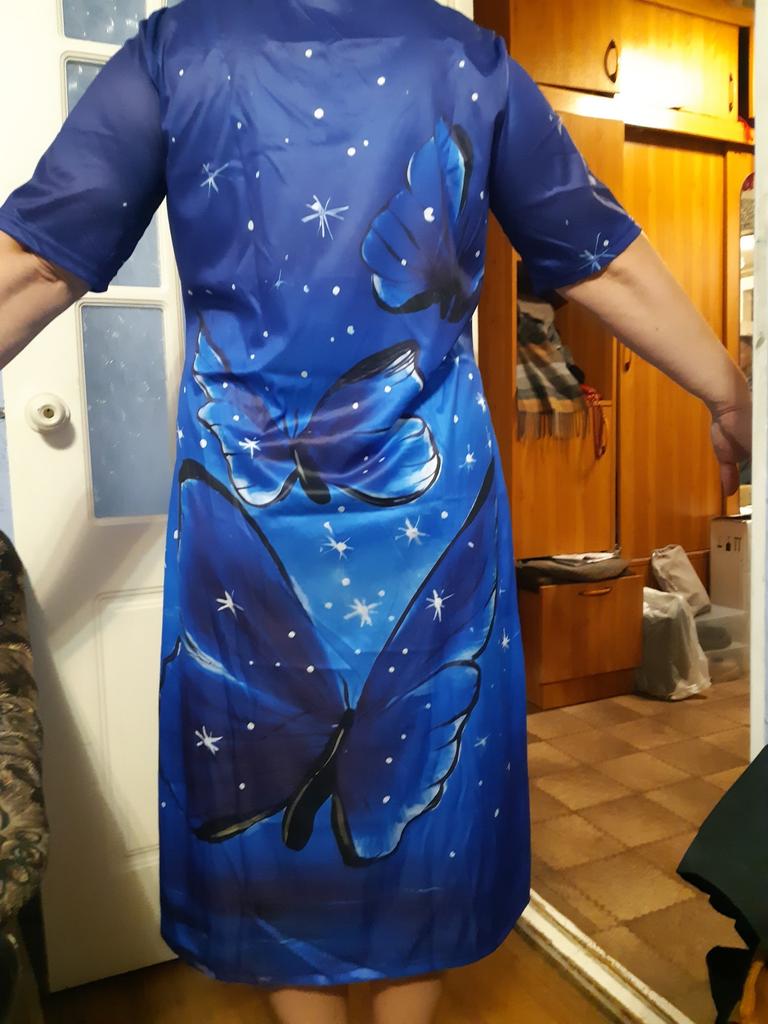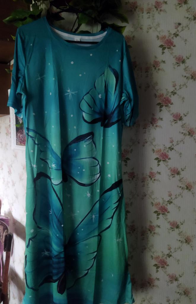 Thank you, a beautiful home summer bright dress, fits well for size 48-50