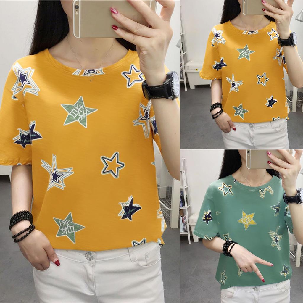 Women Star Printed Short Sleeve Blouse Loose Casual Tops Girls T-Shirt Tunic