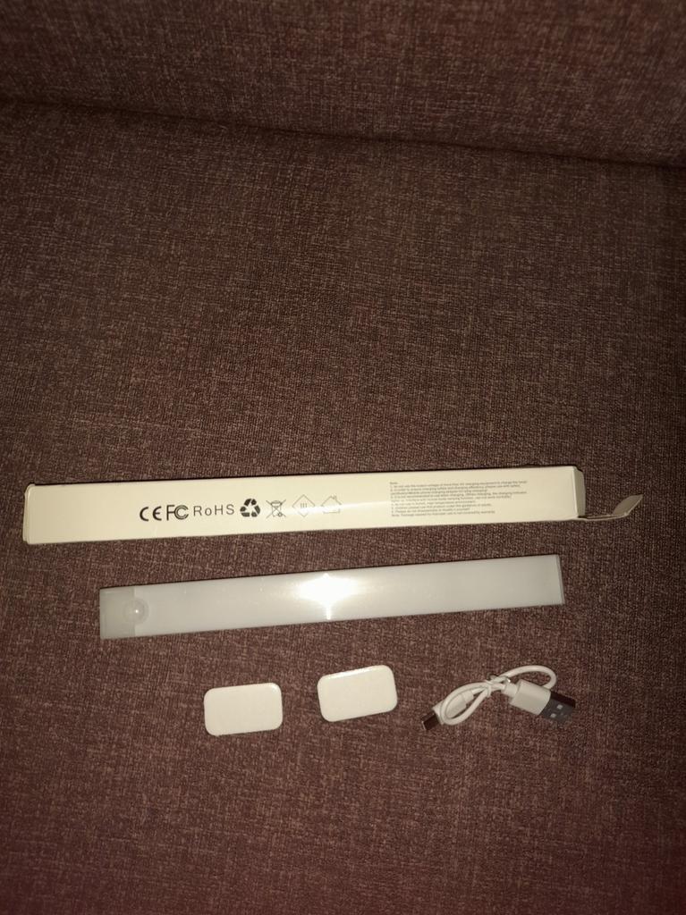 Excellent light, with a motion sensor, turns off by itself after a while when you move away, sticks with magnetic tape, everything is included in the kit, rechargeable Type C type. I am supplementing the review after use: it discharges quickly😐, you have to charge it daily.