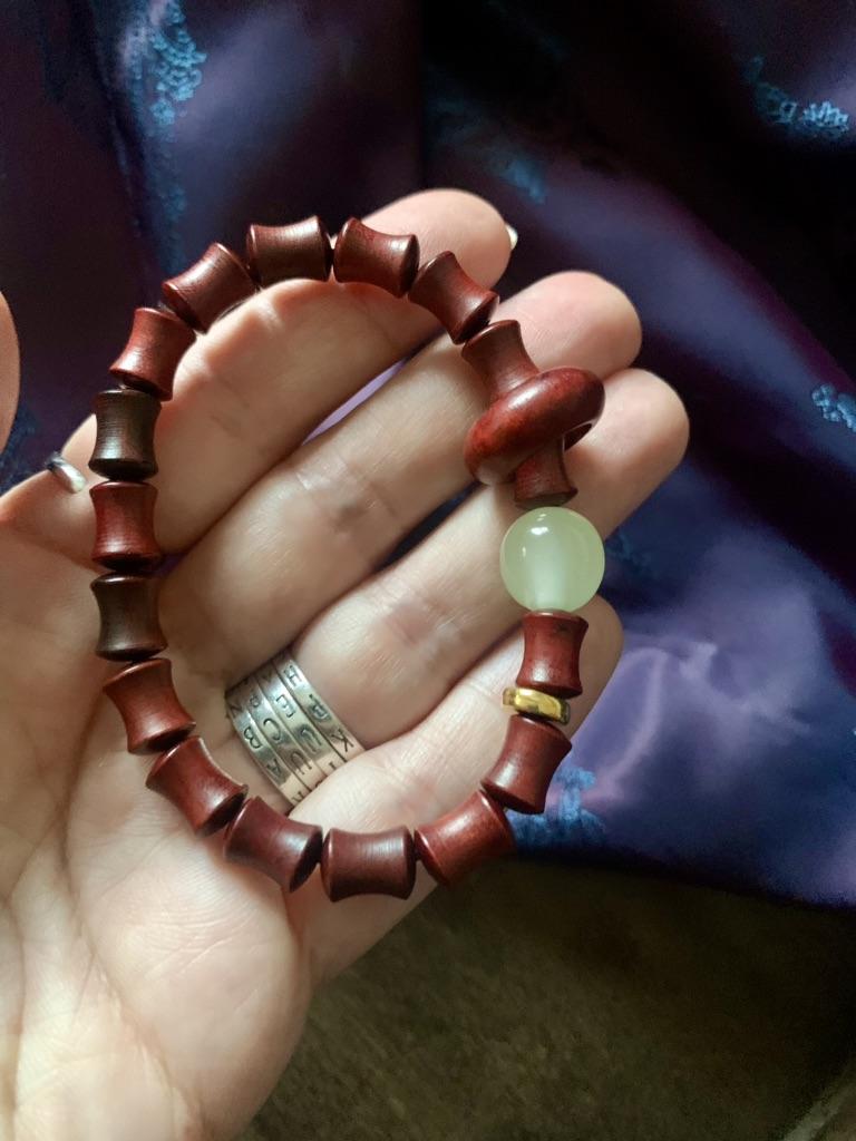 Beautiful bracelet from JMANDJM Bamboo bracelet with green sandalwood, looks very beautiful, fits the middle hand and complements any look ๐ฅ โ๏ธ The parcel went a month to Moldova, Chisinau. ๐Quality is good ๐Package was well packed. ๐ No bad smell. ๐ Looks very nice. ๐Delicate design. Definitely recommend to buy โค๏ธ
