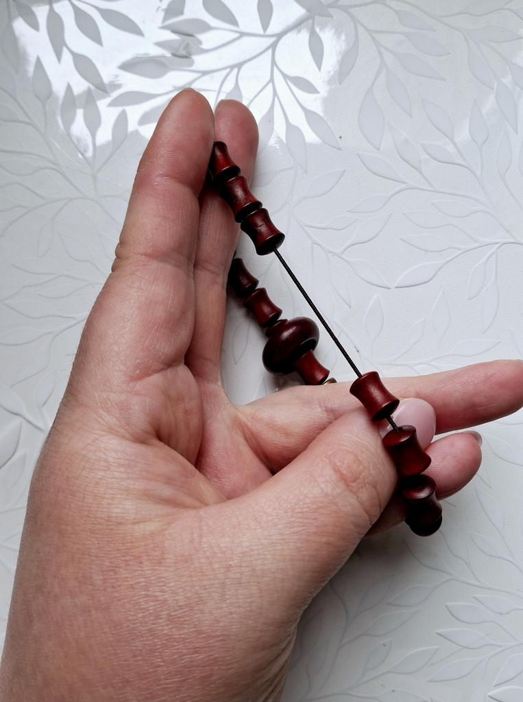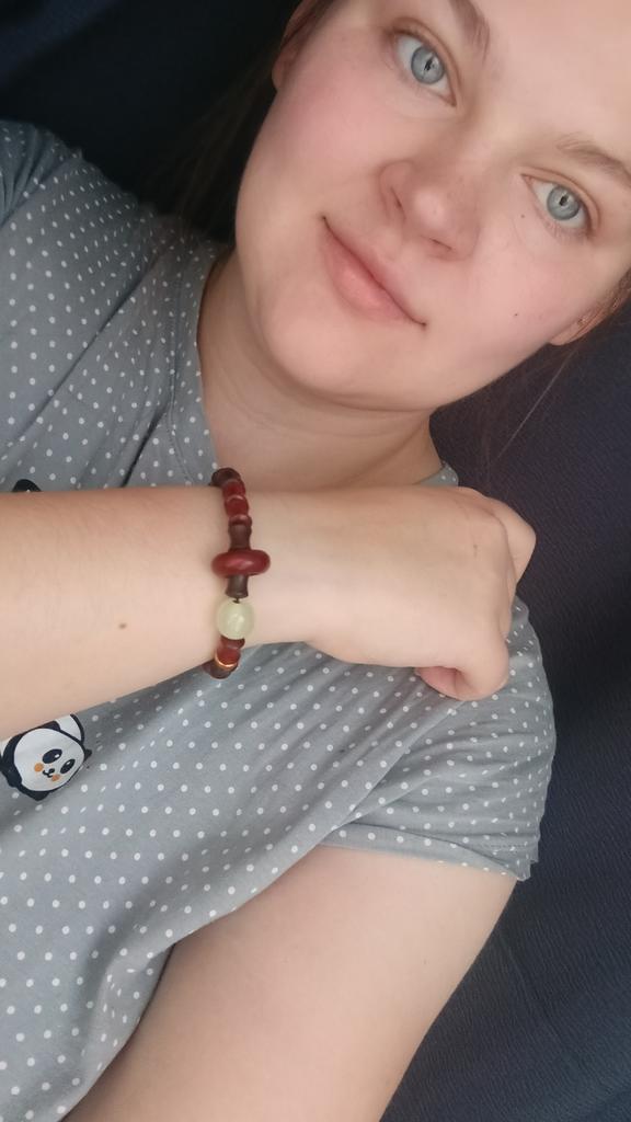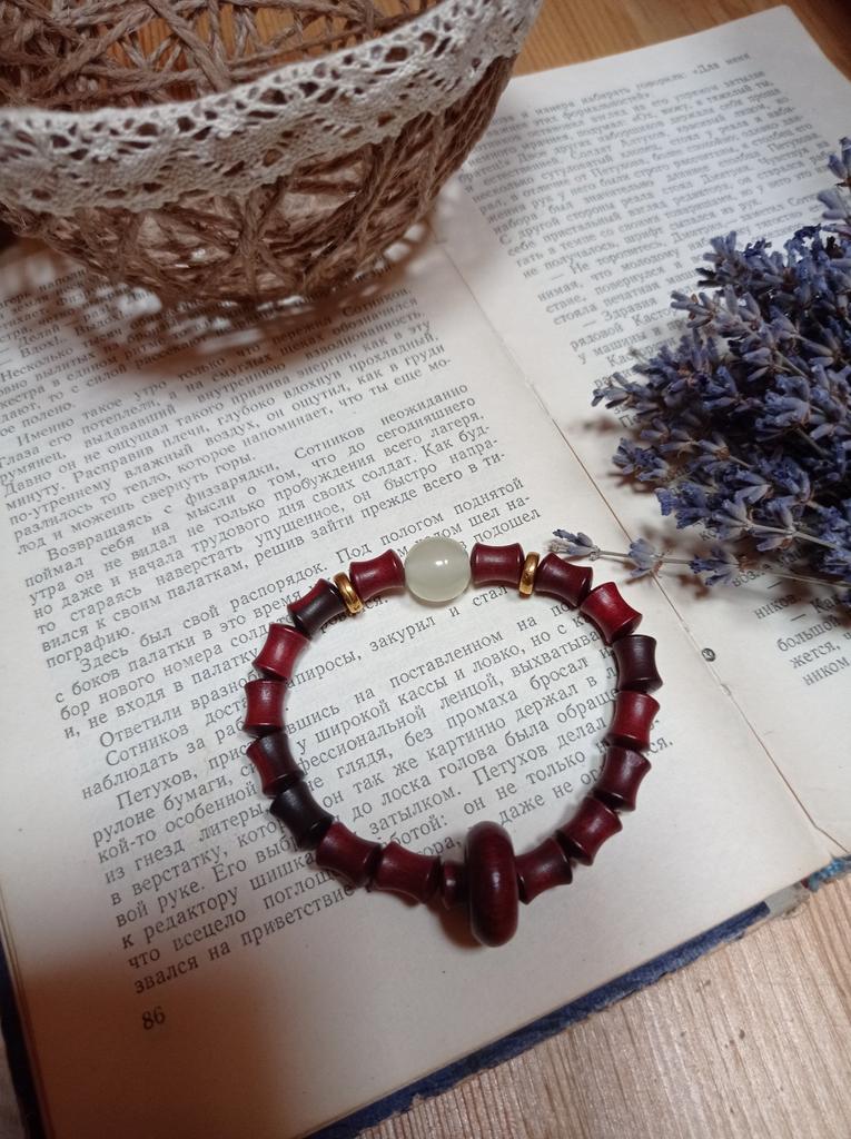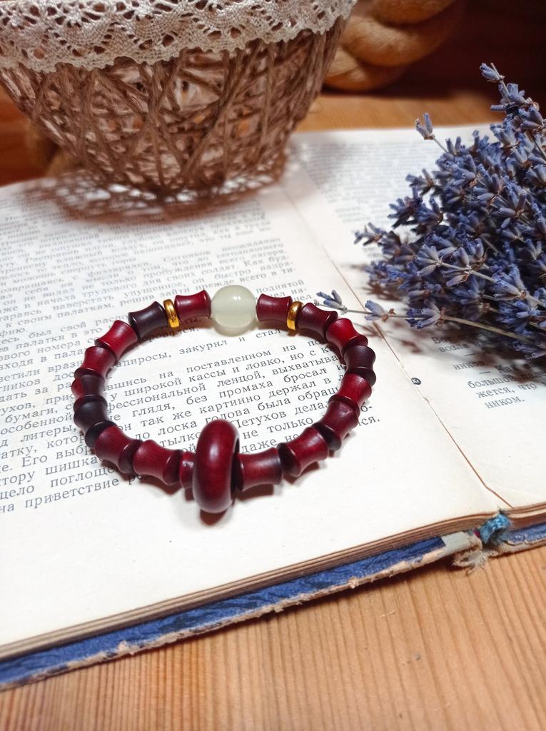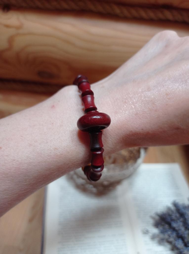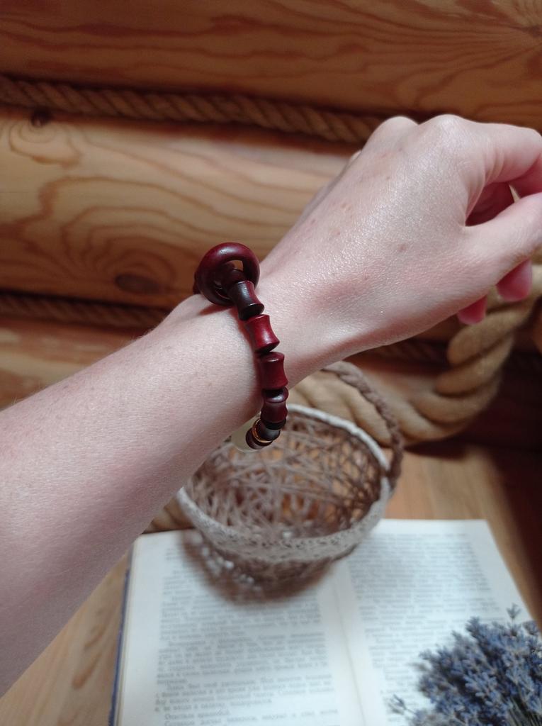 A wooden bracelet with a glow-in-the-dark bead. The bracelet is on a string, so it will fit any wrist. The seller has three color options, I chose red. The color is restrained, natural, and this makes the decoration more universal and harmonious. The bracelet is decorated with a wooden ring that moves freely on it. The bracelet goes well with other jewelry and perfectly complements various bows. I liked the bracelet โบ๏ธ. If the information was useful, put it as a favorite โค๏ธ I received the product in 22 days in a combined package ๐ The track was tracked completely. The arrival at the point of issue was announced by sms ๐ฒ. Packaging: bubble bag and individual packaging. Goods without defects. Odorless. Happy shopping and fast deliveries to everyone ๐๏ธโบ๏ธ๐๐ And remember that every woman is a star, so shine brighter ๐ โค๏ธ.