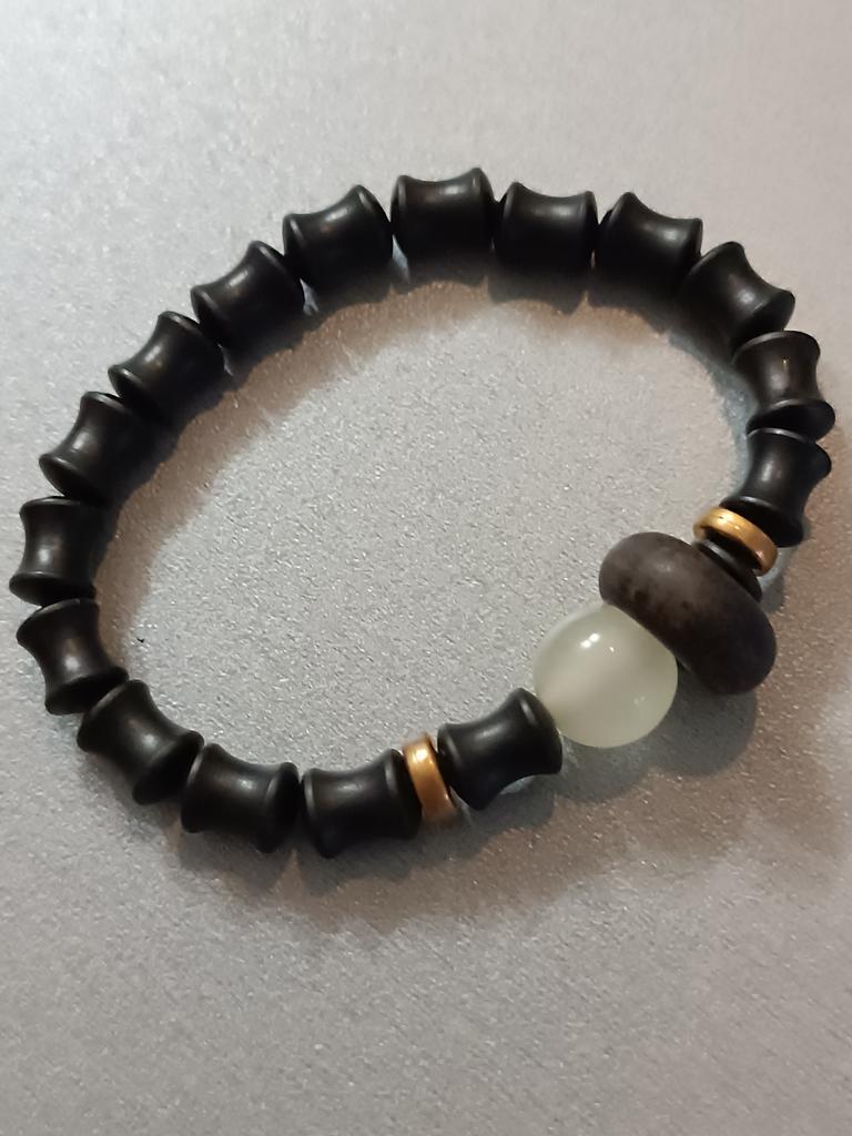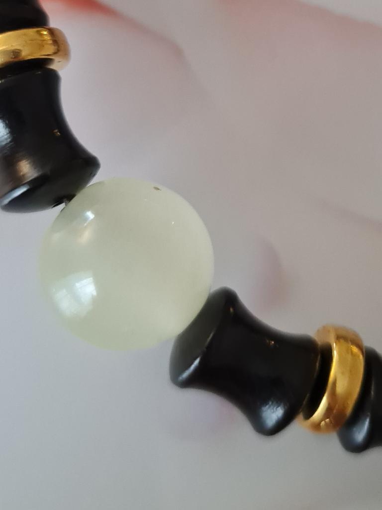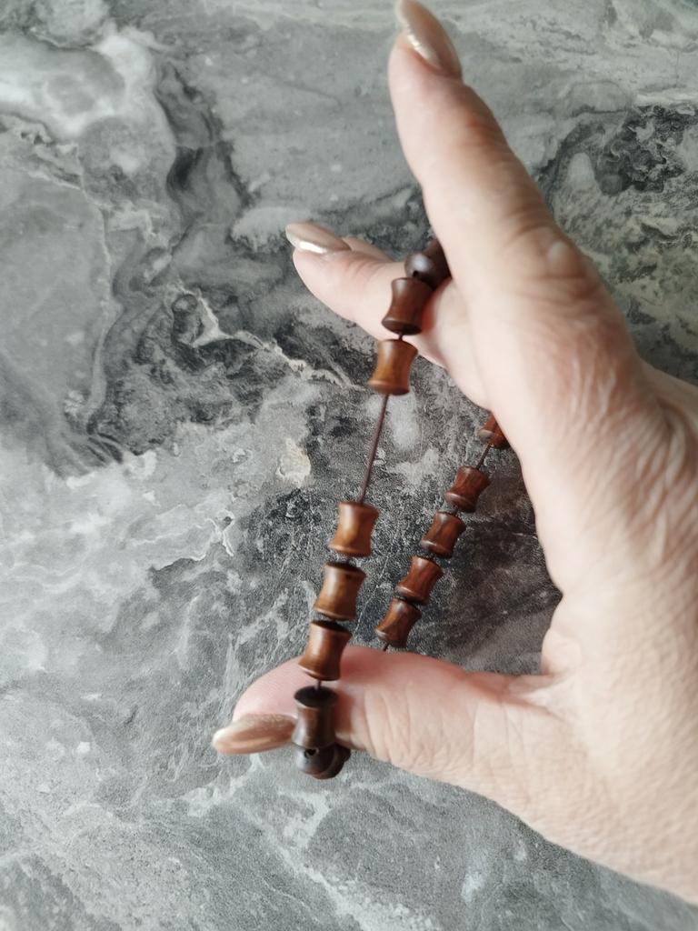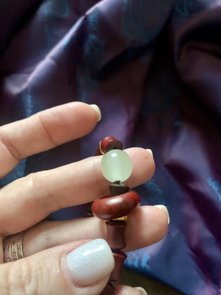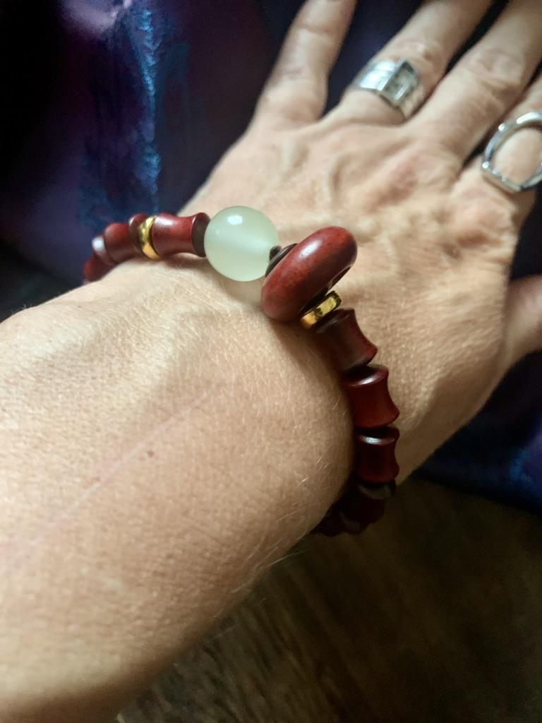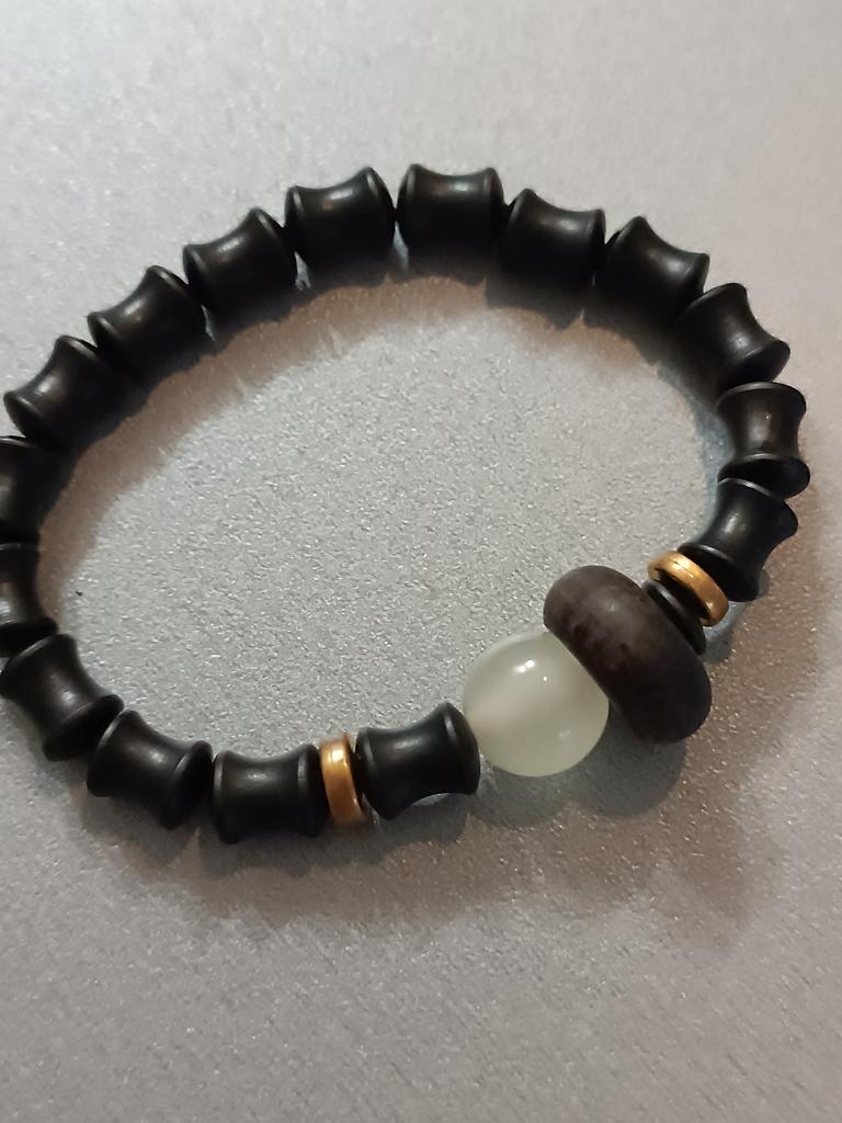 This beautiful sandalwood bracelet has completely captured my attention. This bracelet is not only aesthetically pleasing with its elegant design, but it also has a special meaning that makes it unique.. The bracelet is made of sandalwood. Sandalwood is not only attractive, but is also often associated with calm and meditation, making it a great choice for those looking for a spiritual touch in their accessories.. The little green ball that adorns the bracelet is the real star. What makes it even more special is that it lights up in the dark, creating a magical and eye-catching effect. This detail not only adds a fun and distinctive touch, but also symbolizes light in the darkness, reminding us that there is always hope and beauty, even in the most challenging times.. The bracelet is comfortable to wear and its versatile design can be easily combined with different styles and outfits. Without a doubt, this sandalwood bracelet has become one of my favorites, not only for its visual appeal, but also for the symbolism it represents. I recommend it to anyone looking for a special and meaningful piece.