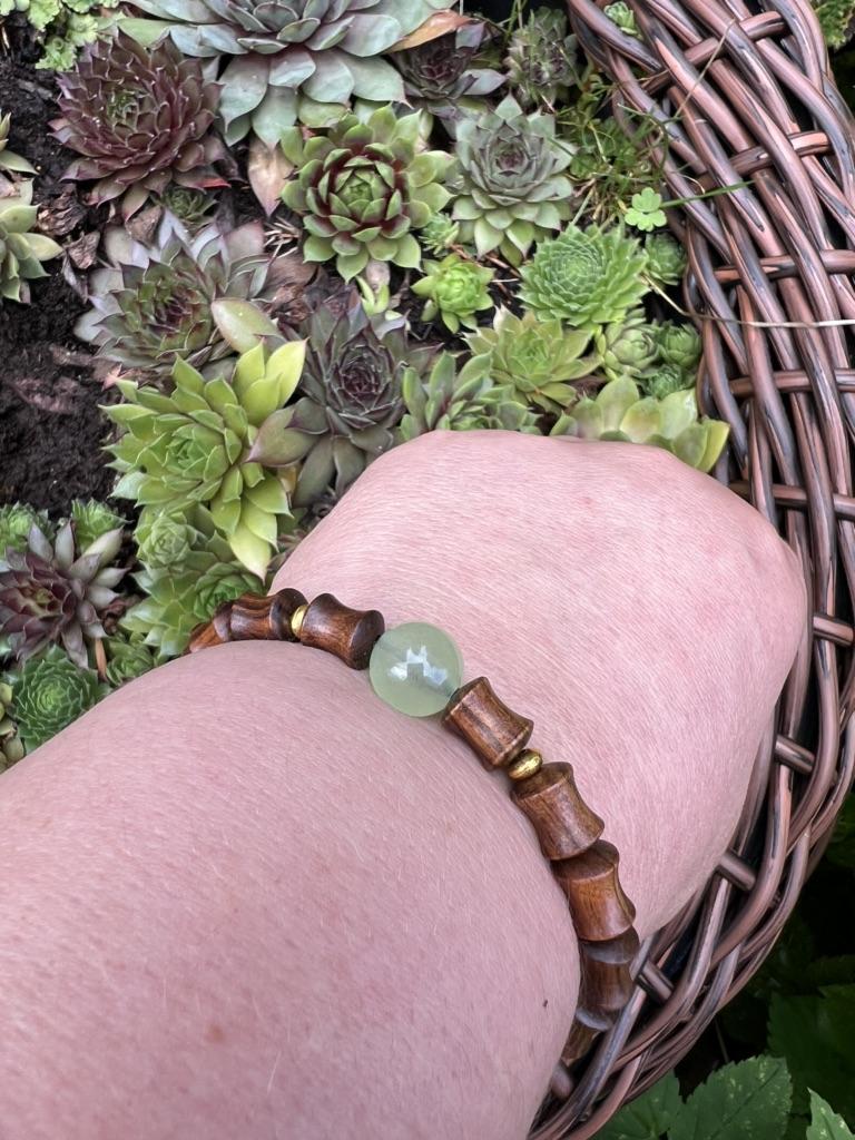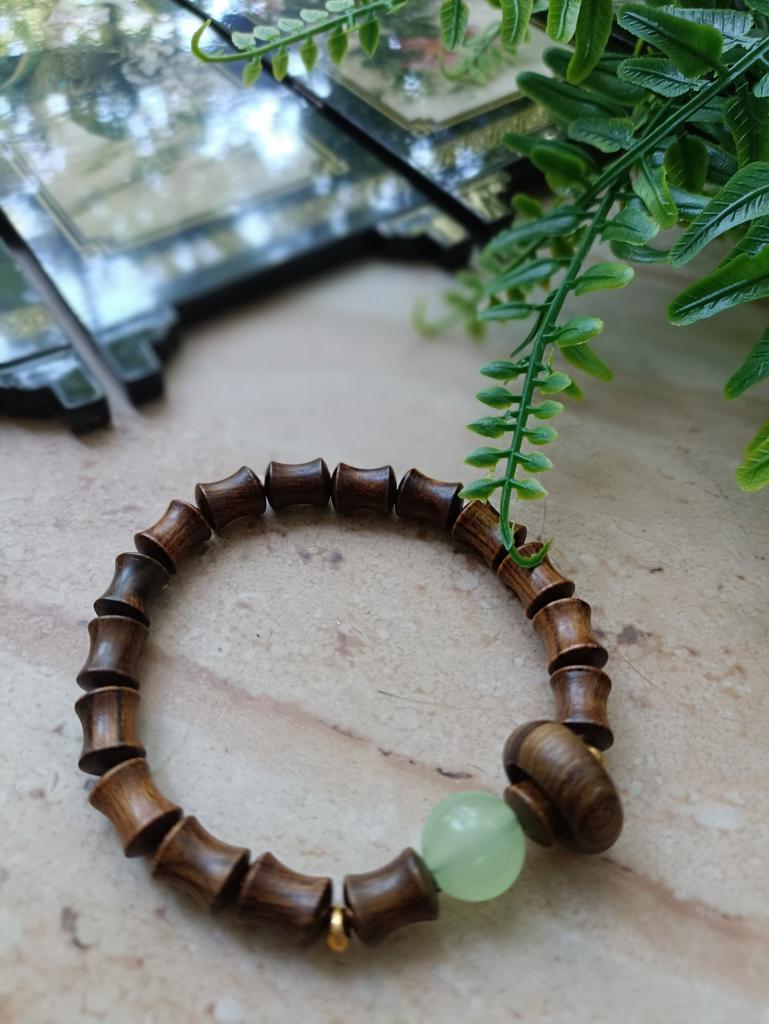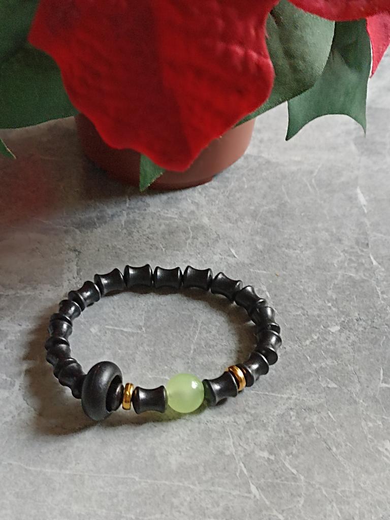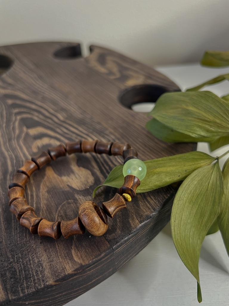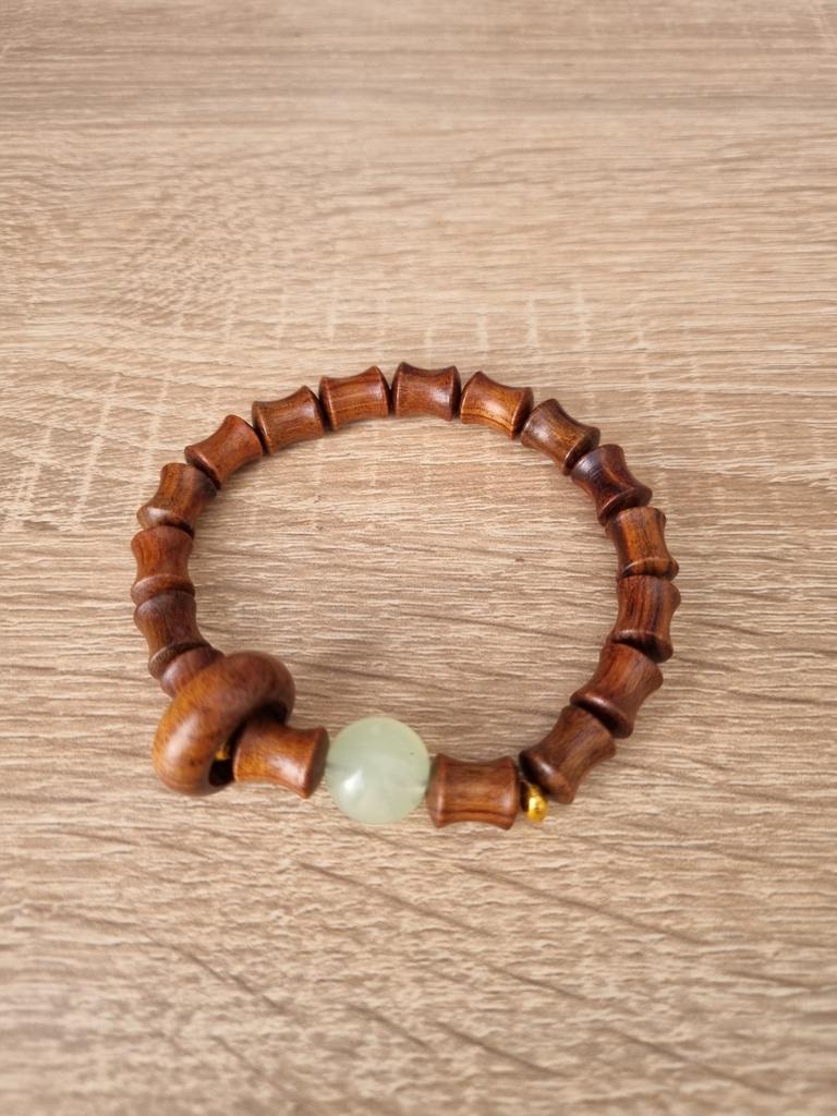 This beautiful sandalwood bracelet has completely captured my attention. This bracelet is not only aesthetically pleasing with its elegant design, but it also has a special meaning that makes it unique.. The bracelet is made of sandalwood. Sandalwood is not only attractive, but is also often associated with calm and meditation, making it a great choice for those looking for a spiritual touch in their accessories.. The little green ball that adorns the bracelet is the real star. What makes it even more special is that it lights up in the dark, creating a magical and eye-catching effect. This detail not only adds a fun and distinctive touch, but also symbolizes light in the darkness, reminding us that there is always hope and beauty, even in the most challenging times.. The bracelet is comfortable to wear and its versatile design can be easily combined with different styles and outfits. Without a doubt, this sandalwood bracelet has become one of my favorites, not only for its visual appeal, but also for the symbolism it represents. I recommend it to anyone looking for a special and meaningful piece.