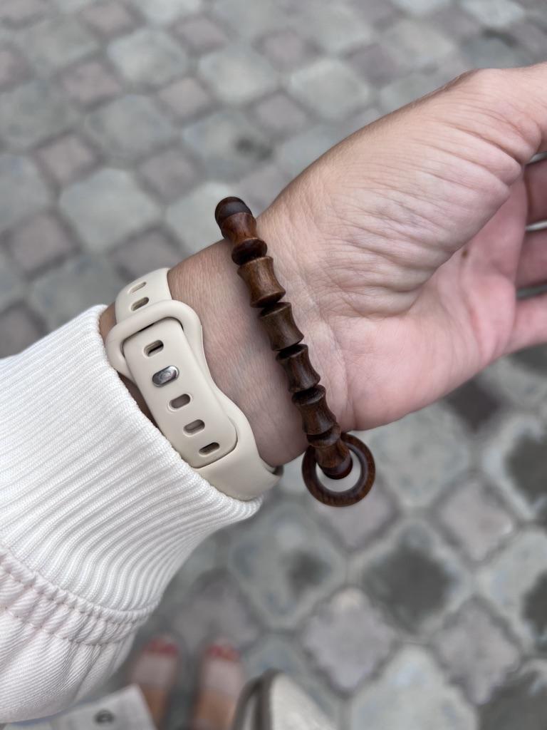 Sandalwood bracelet. 3 colors to choose from. The aroma of sandalwood calms the mind and stimulates clear perception of the world. A brutal and functional bracelet model with an excellent price-quality ratio. An ideal gift for those who practice yoga and meditation. The beads are strung on a reliable elastic band, which will give the bracelet durability, flexibility and beauty. Does not squeeze the skin. The number of brown beads is 17, one white bead in the center and a sliding wooden ring.