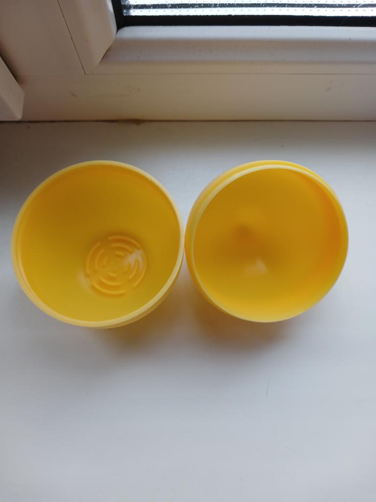 A good container for lemon. The halves are twisted, not just put on top of each other. The plastic is thick.