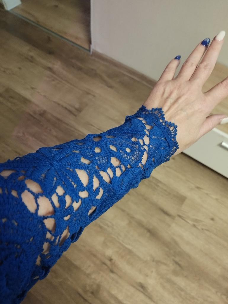Terrible knitwear, long sleeves, looks terrible with such lace.