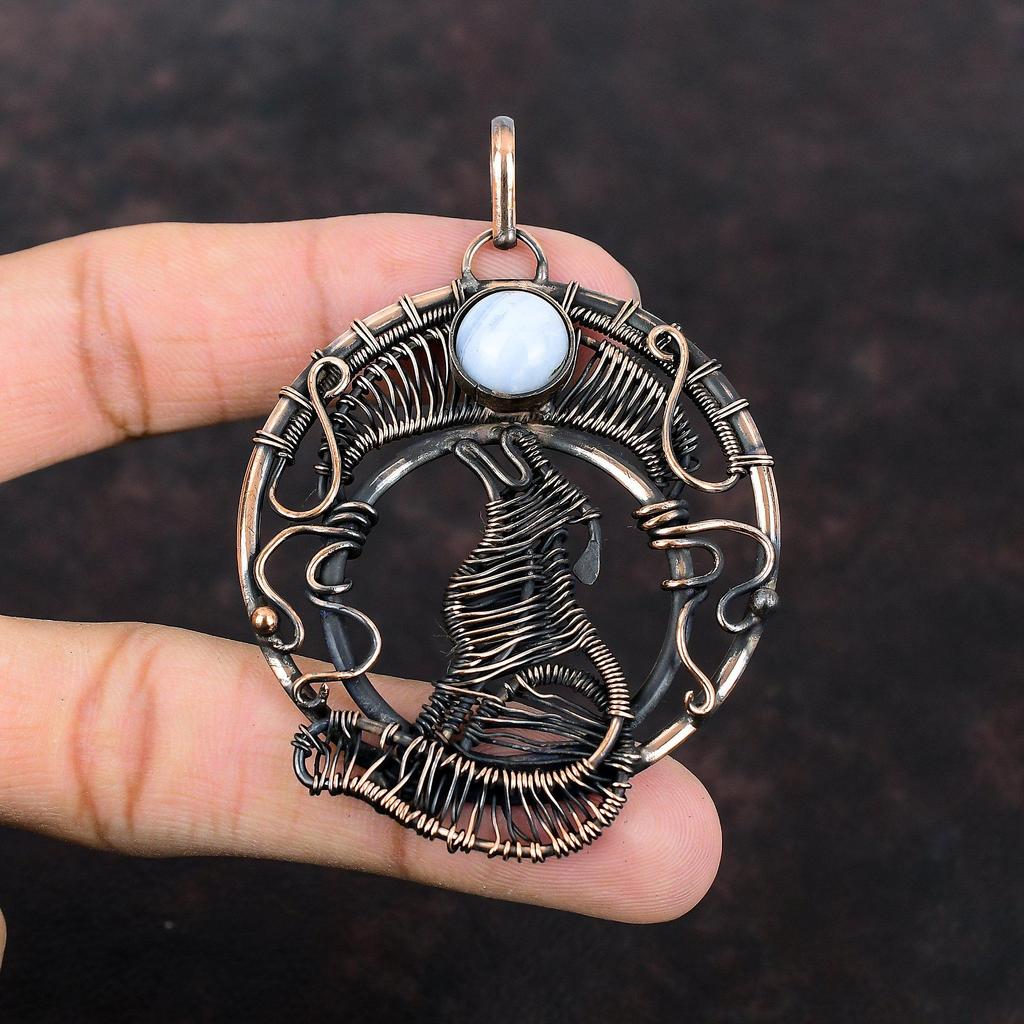 Blue Lace Agate Pendant Real Gemstone Pendant Copper Wire Wrapped Pendant Handmade Copper Jewelry Gift For Her Dog Pendant Wire Wrap Jewelry