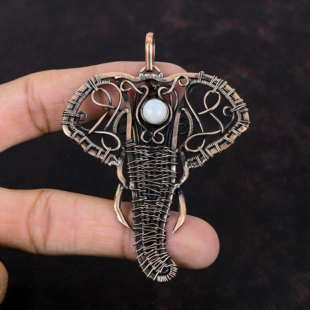 Rainbow Moonstone Pendant Copper Wire Wrapped Jewelry Elephant Pendant Handmade Copper Pendant Gemstone Pendant Engagement Gift Wire Pendant