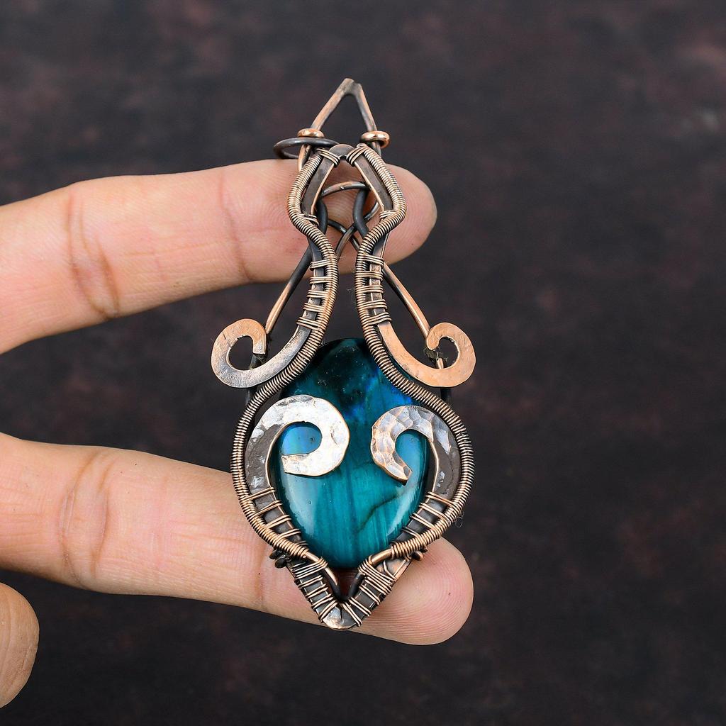 Neon Flash Labradorite Pendant Copper Wire Wrapped Pendant Brand New Jewelry Gemstone Pendant Copper Wire Jewelry Handmade Pendant For Women