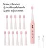 Option 1、(Black 4 Head / White 4 Head / Pink 4 Head / Blue 4 Head):4pcs brush head ,1pcs electric toothbrush handle,1pcs charging cable,English manual.(It's the bag packing, the retail box is not included) Option 2、(Black 8 Head / White 8 Head / Pink 8 Head / Blue 8 Head):8pcs brush head ,1pcs electric toothbrush handle,1pcs charging cable,English manual.(It's the bag packing, the retail box is not included) Option3 、(Black 12 Head / White 12 Head / Pink 12 Head / Blue 12 Head):