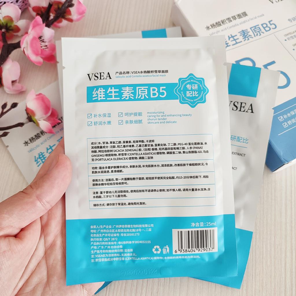 5pcs Salicylic Acid Centella Asiatica Vitamin B5 Face Mask, Hydrating and Moisturizing